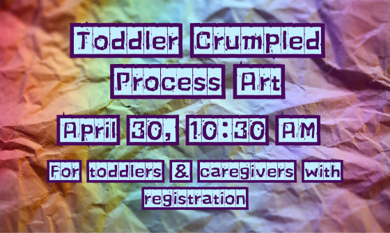 Toddlers and caretakers can join us for a fun art project! On April 30 at 10:30 AM, toddlers and their caregivers will crumple and uncrumple paper to create unique tie-dyed artwork. Register online or call 412-269-0334 ...