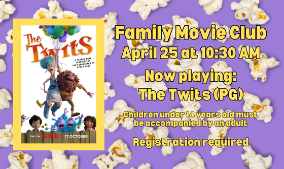 Families, hang out to watch the DVD release of The Twits (PG) on April 15 at 10:30 AM. Children under 14 years old must be accompanied by an adult for the entire duration of the movie. Summary: Two orphans join forces with a family of magical animals to save their ...