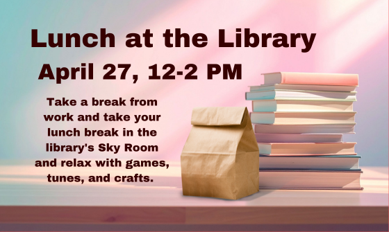 On April 27 at 12 PM, we’re opening our Sky Room for local brown baggers to come and eat in the quiet of the library. Bring your food and relax on your lunch break with some coloring pages, word searches, and chill music. Adults are welcome. No registration is required ...