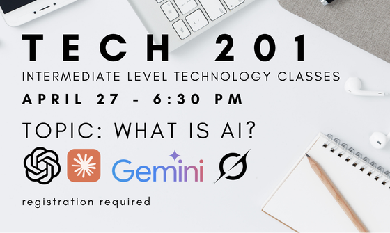 Behind or new to technology? Come to our Tech 101 classes for adults to learn beginner level computer and smart device tips in small tutoring sessions with our Technical Services Librarian Ms. Roxanne. The Tech 101 class on April 20 at 6:30 PM will focus on the basics of using the ...