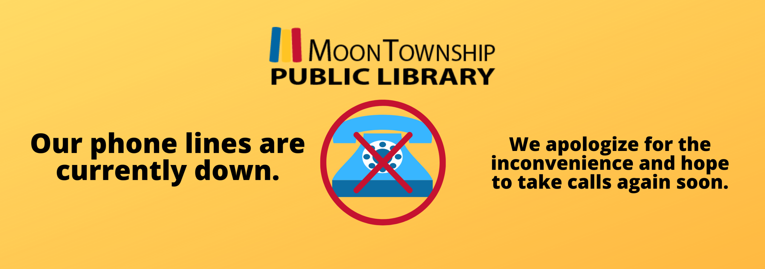 Moon Library will be closed Tuesday, November 11, in observance of Veterans Day. We will reopen on Wednesday, November 12 at 10 AM. Thank you for your patience and for honoring our troops ...